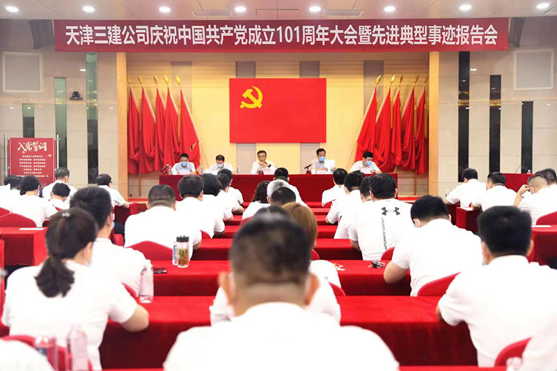 2022年7月1日上午9點,天津三建公司召開“慶祝中國共產黨成立101周年暨先進典型事跡報告會”。公司兩級領導班子、優秀黨員代表和項目經理代表、一線員工代表等90人參加大會。全體參會人員與2022年5名預備黨員一起重溫入黨誓詞,回首百年黨史,對照初心使命,鞭策和激勵所有共產黨員銘記誓言,不斷進取,奮斗終身。