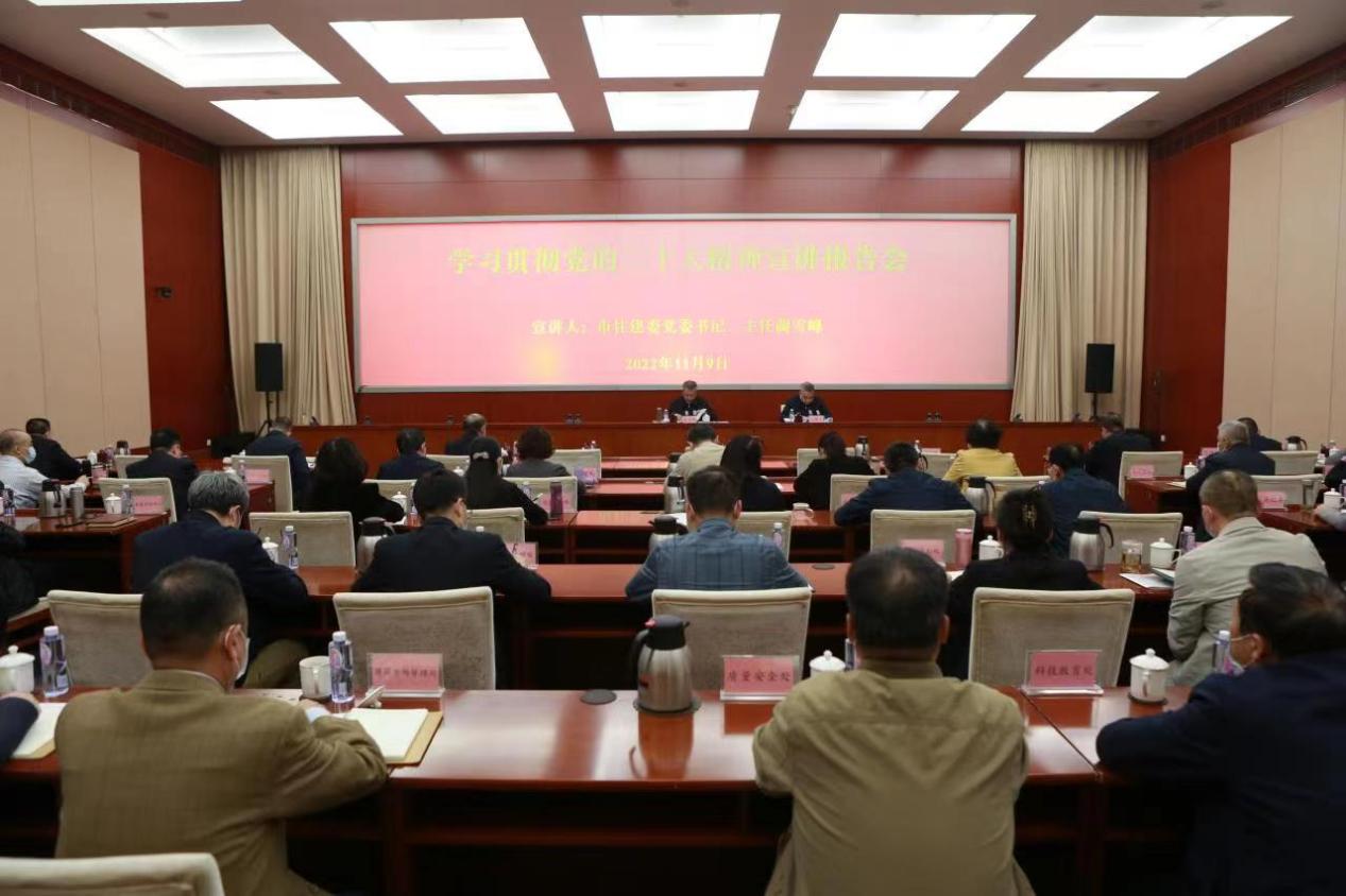 為深入學習宣傳貫徹黨的二十大精神,根據中央決定,依據市委部署,11月9日下午,市住房城鄉建設委召開學習貫徹黨的二十大精神宣講報告會,市住建委黨委書記、主任藺雪峰作宣講報告,動員全系統黨員干部群眾將思想和行動統一到黨的二十大精神上來,把智慧和力量凝聚到黨的二十大提出的目標任務上來,推動大會精神入腦入心、見行見效。委領導班子成員、二級巡視員,機關各處(室)負責人,住建執法總隊、公積金中心、各直屬單位主要負責同志參加會議。