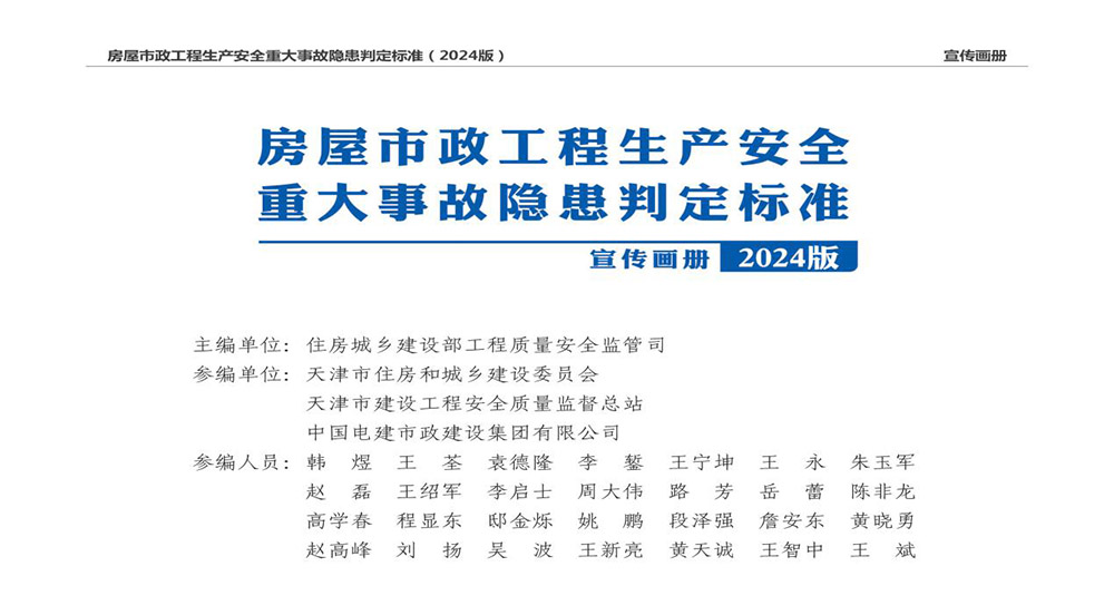 近日住房城鄉建設部發布《房屋市政工程生產安全重大事故隱患判定標準(2024版)》,我委會同市安全質量監督總站組織中國電建市政建設集團有限公司編制的配套宣傳畫冊和海報也由官方同步發布。