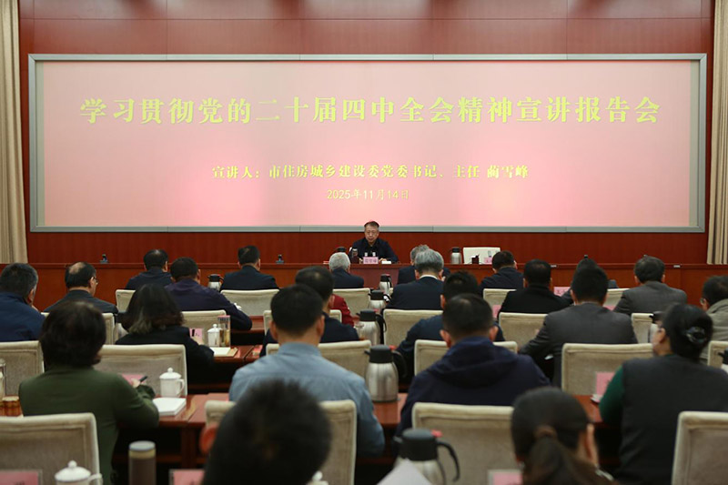 按照市委統一部署,11月14日,市住房城鄉建設委舉行學習貫徹黨的二十屆四中全會精神宣講報告會。委黨委書記、主任藺雪峰作宣講報告。委領導班子成員,系統處級以上干部及黨員骨干參加。