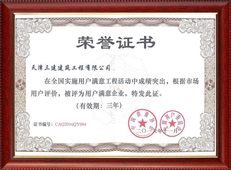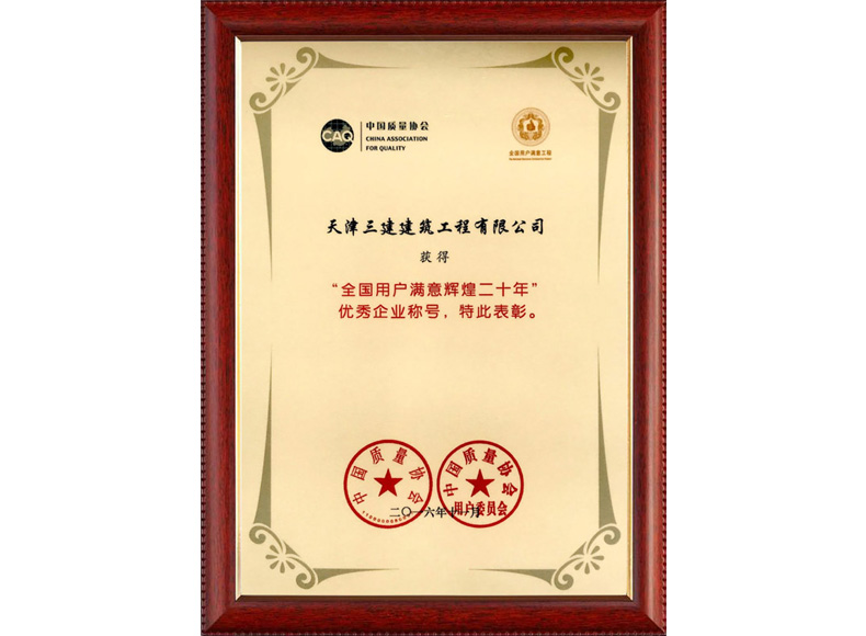2016 全國用戶滿意輝煌20年優秀企業稱號