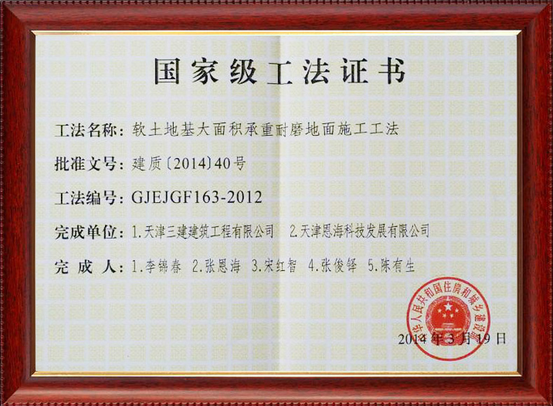 2012-2軟土地基大面承重耐磨地面施工工法(升級)