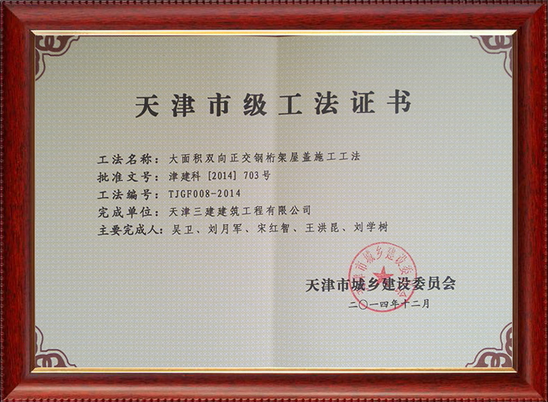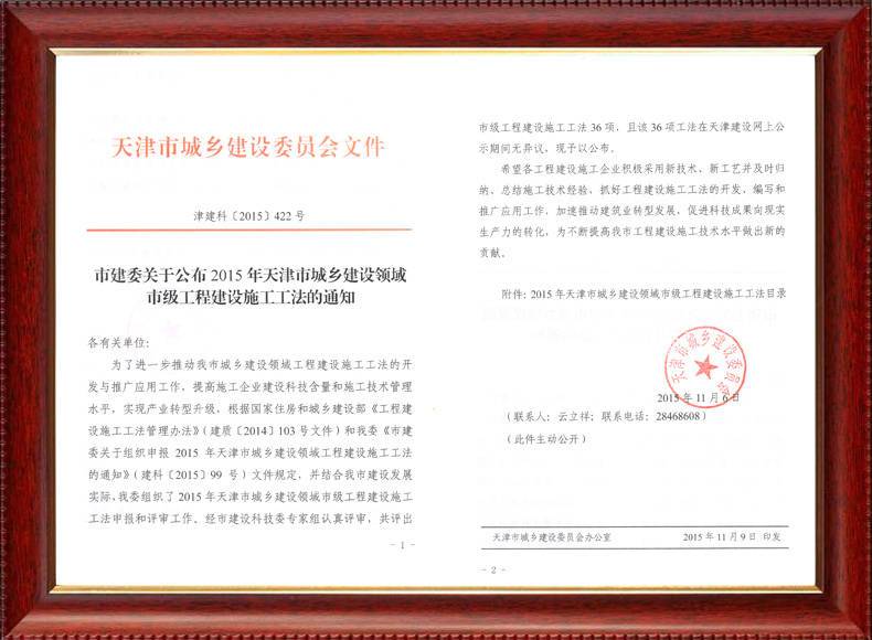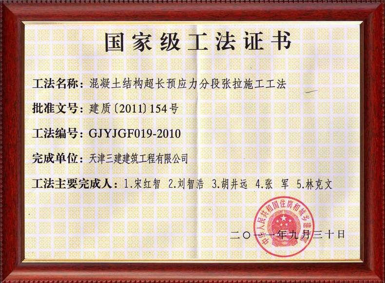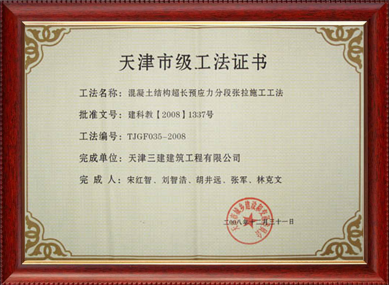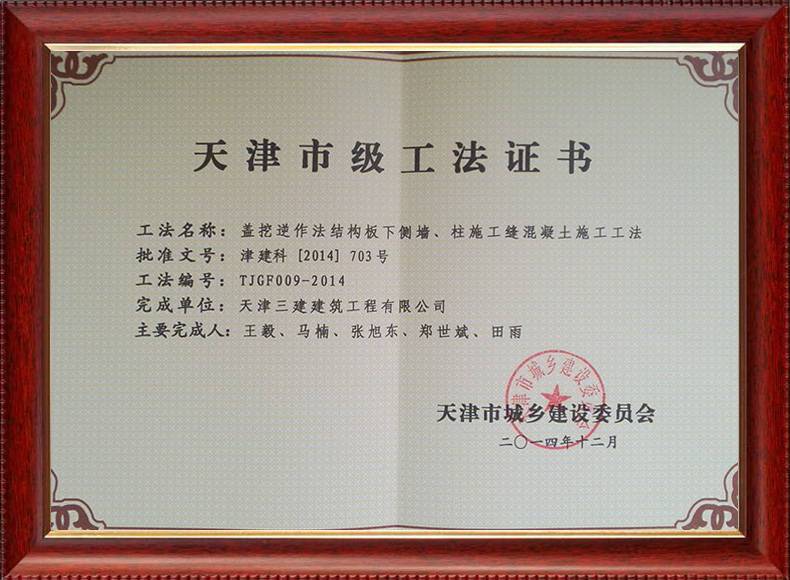 三建公司不斷發(fā)揚科技創(chuàng)新精神,注重施工經(jīng)驗的提練和總結(jié),編寫了27項工法,其中國家級工法3項,市級工法24項。為促進城市建設(shè)快速發(fā)展,不斷提升施工工藝水平做出了重要貢獻。