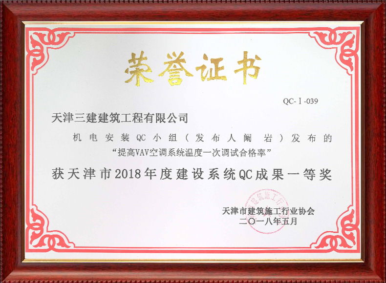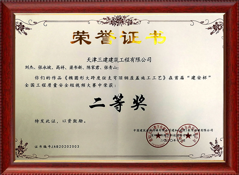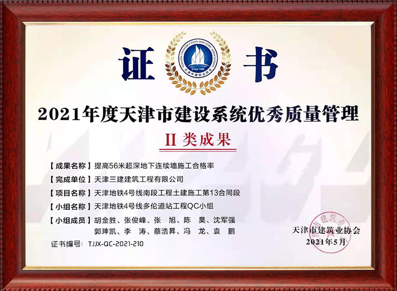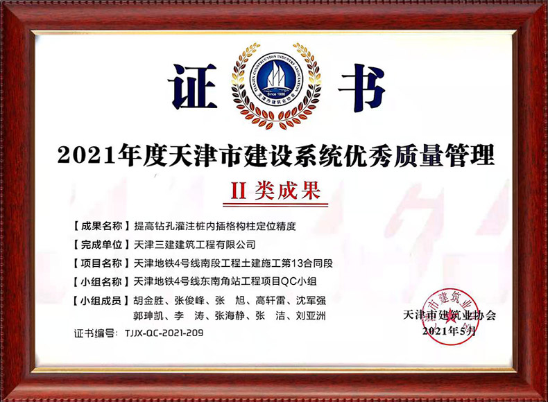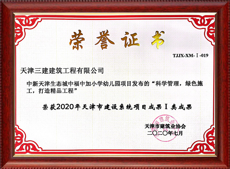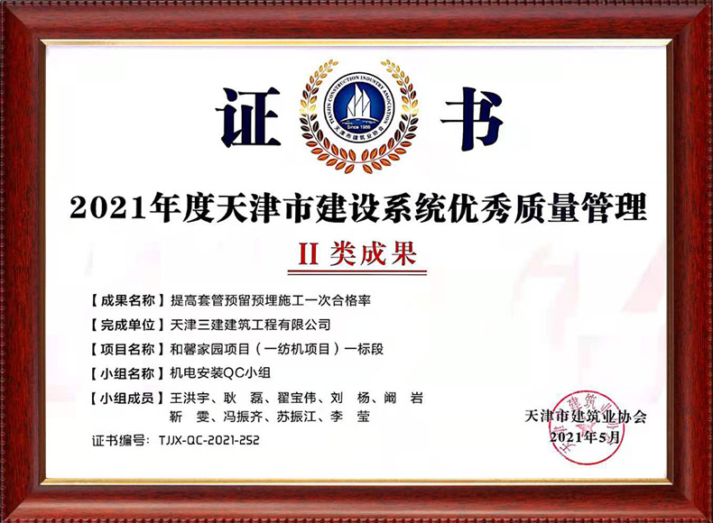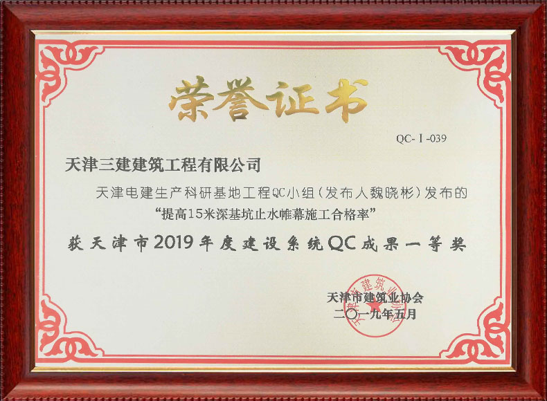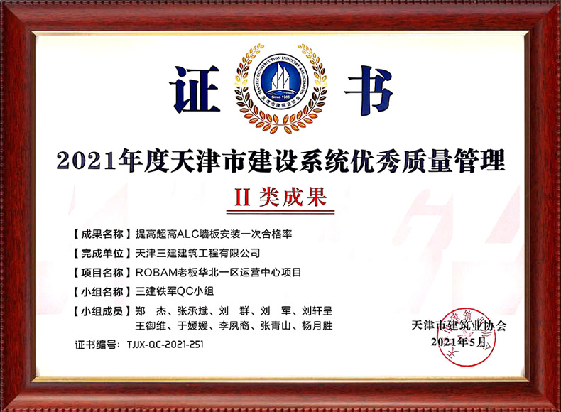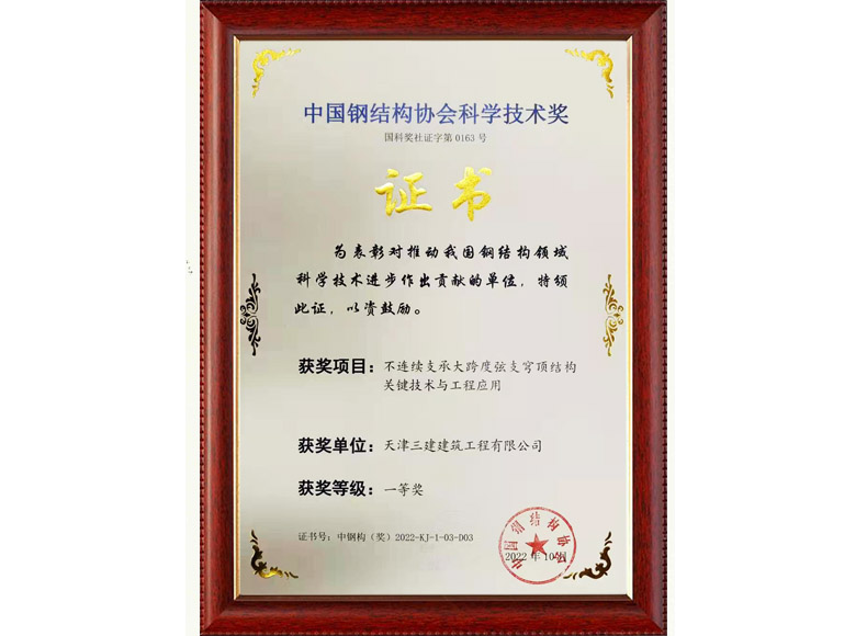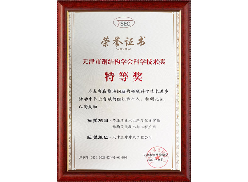三建公司共獲得科技成果等各項獎項74項,其中中施企協類6項,中國建筑協會獎項6項,政府類2項,其他類17項。獲得天津市科學技術委員會等級科技成果43項。