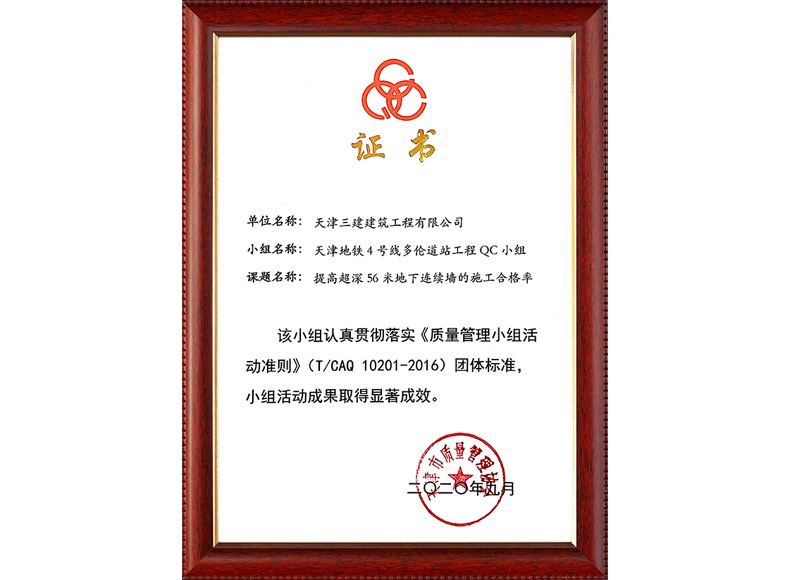 2020天津建協一等獎(天津地鐵4號線多倫道站工程項目)