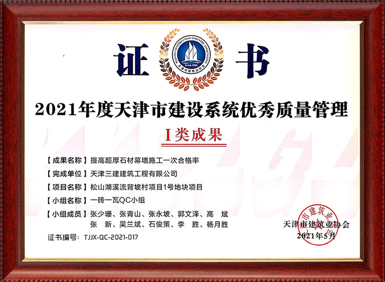 2021中建協I類 提高超厚石材幕墻施工一次合格率