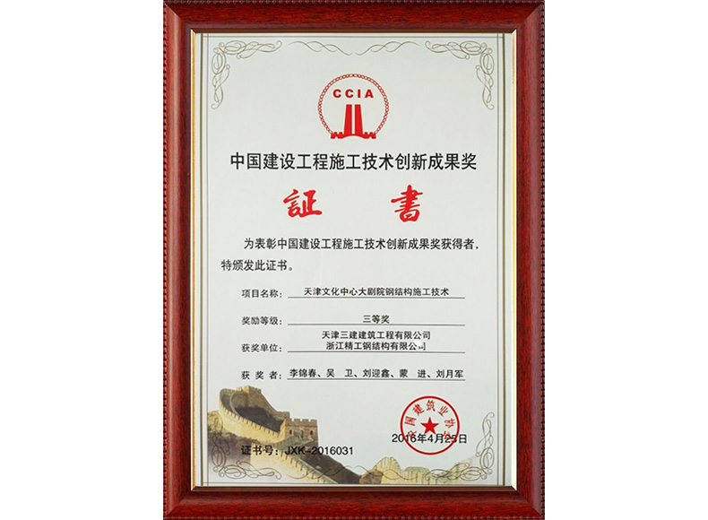 2016中國建筑業協會三等獎證書