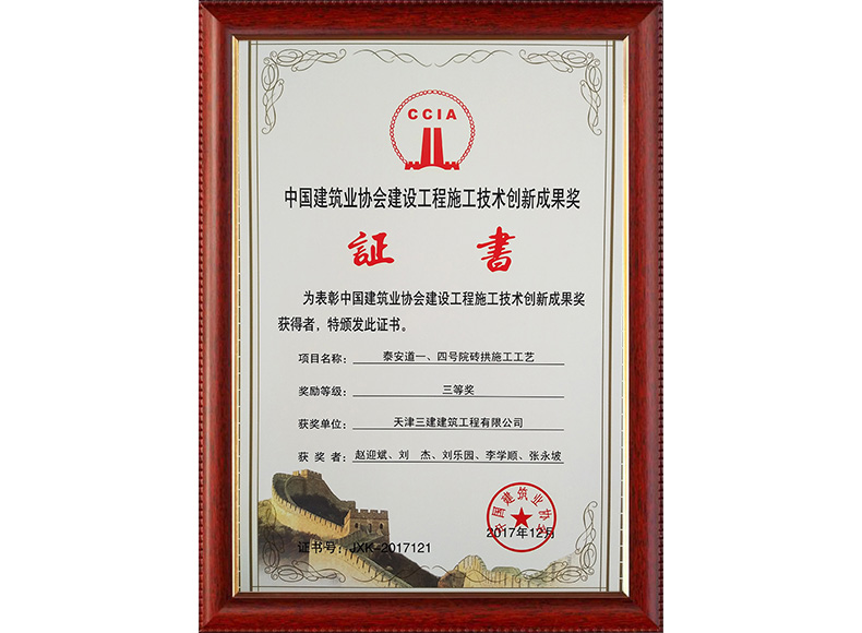 2017年泰安道一四號院磚拱形施工工藝中建協三等獎